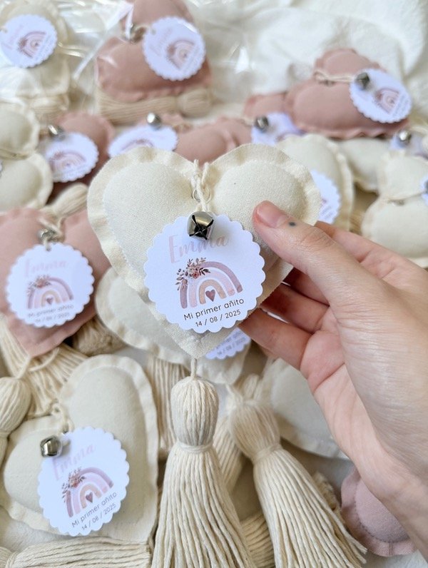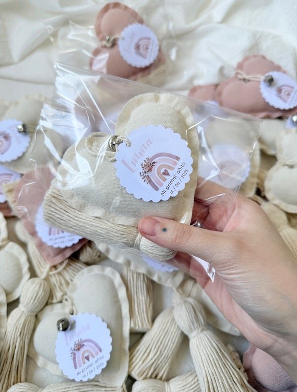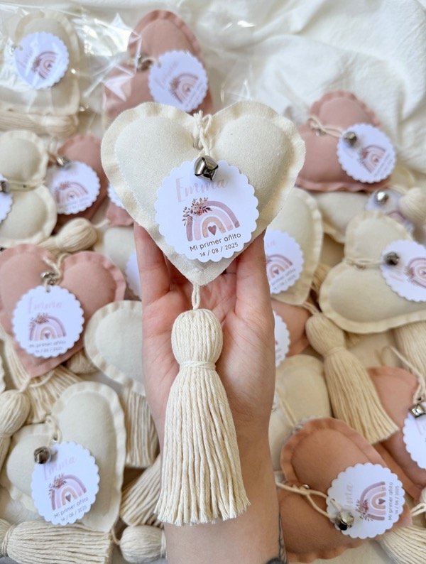 El souvenir de corazón completo mide 20 cm aprox (del corazón hasta la borla)
